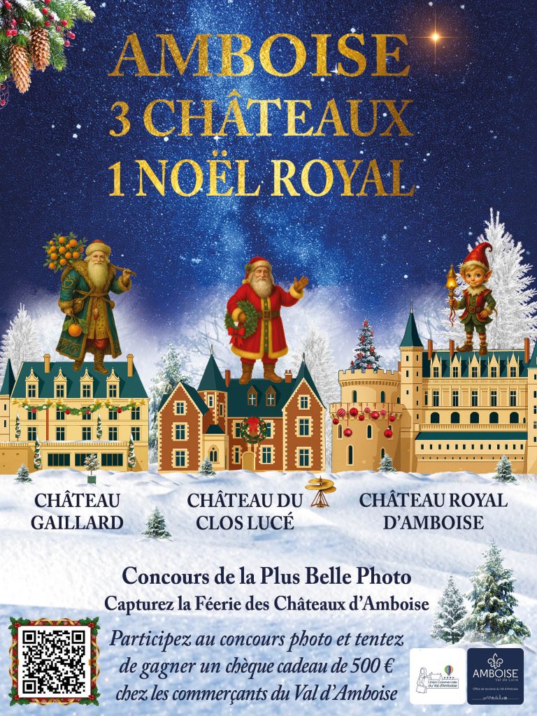 Capturez la féerie des Châteaux d’Amboise et participez au concours photo sur le site Instagram des 3 châteaux avec le #NoelAmboise3chateaux pour tenter de gagner un chèque cadeau de 500€ chez les commerçants du Val d’Amboise.