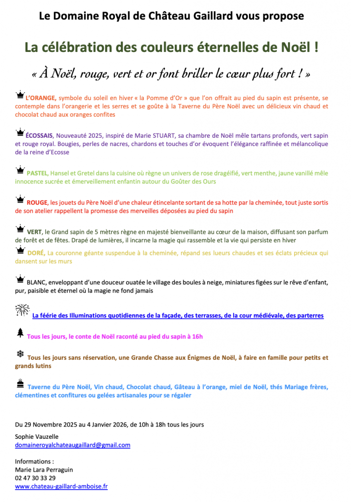 On célèbre les couleurs de Noël à Château Gaillard de 29 Novembre 2025 au 04 Janvier 2026