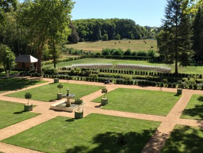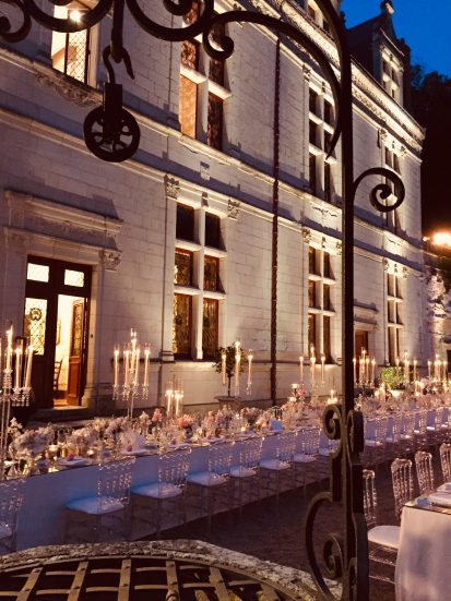 Le styliste des fleurs… Une montgolfière à fleurs de lys… Un chef étoilé… Un feu d’artifice inédit … Un podium blanc de 50 m de long… L’Aston Martin de James bond… Les danseuses de Gatsby… une table de 50 m de long en miroir, la tête dans les étoiles… Une garden-party dans les Jardins du Roi…La Suite Royale de Marie Stuart pour la nuit de noces des mariés.